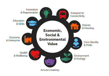 Steer created a Social Value Framework, based on the Public Services (Social Value) Act 2012 which categorises the benefits that a public authority should look to deliver within their area.