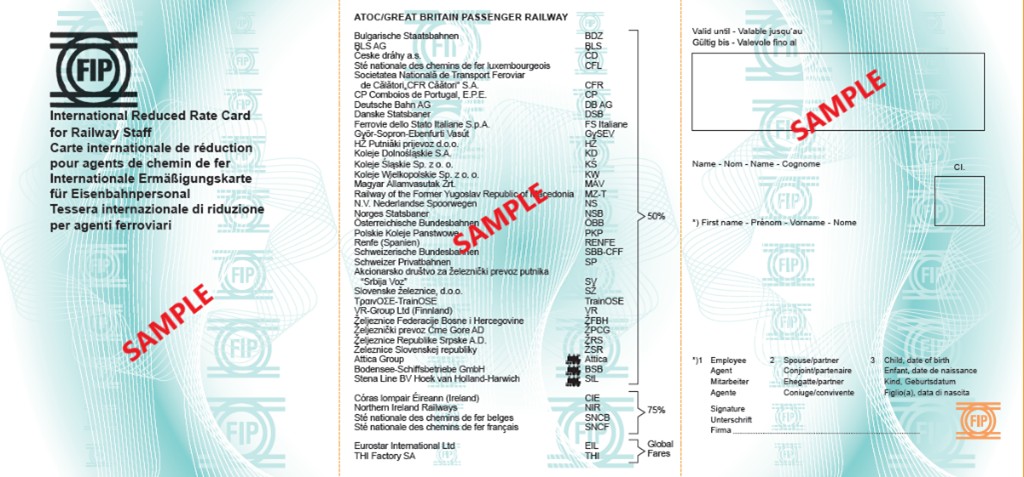 Within Europe, FIP facilities are valid on major rail companies such as: